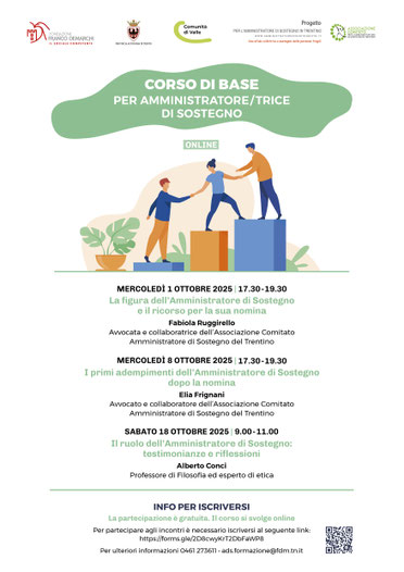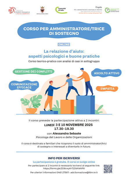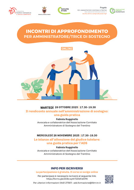 Il corso è destinato a familiari che ricoprono il ruolo di amministratori/trici di sostegno o interessati a diventarlo in futuro.